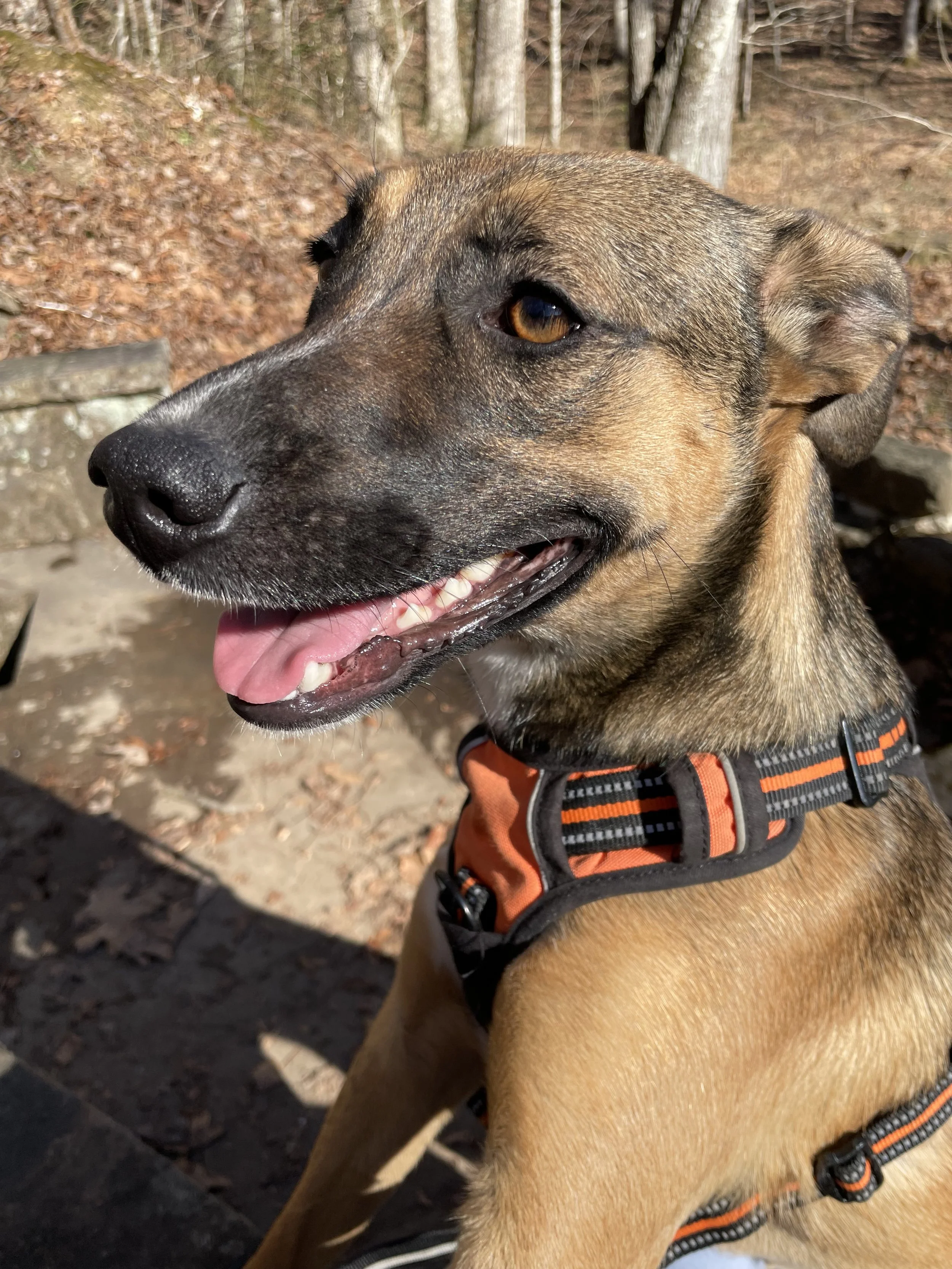 This girl is the last of her litter and is tired of waiting!! She knows how to use a dog door and has done well in a car. On walks, she has behaved well on a leash and around strangers. She can be very vocal but its mainly because she likes to be involved with everything. She would be a great hiking companion and is ready for a new family adventure.