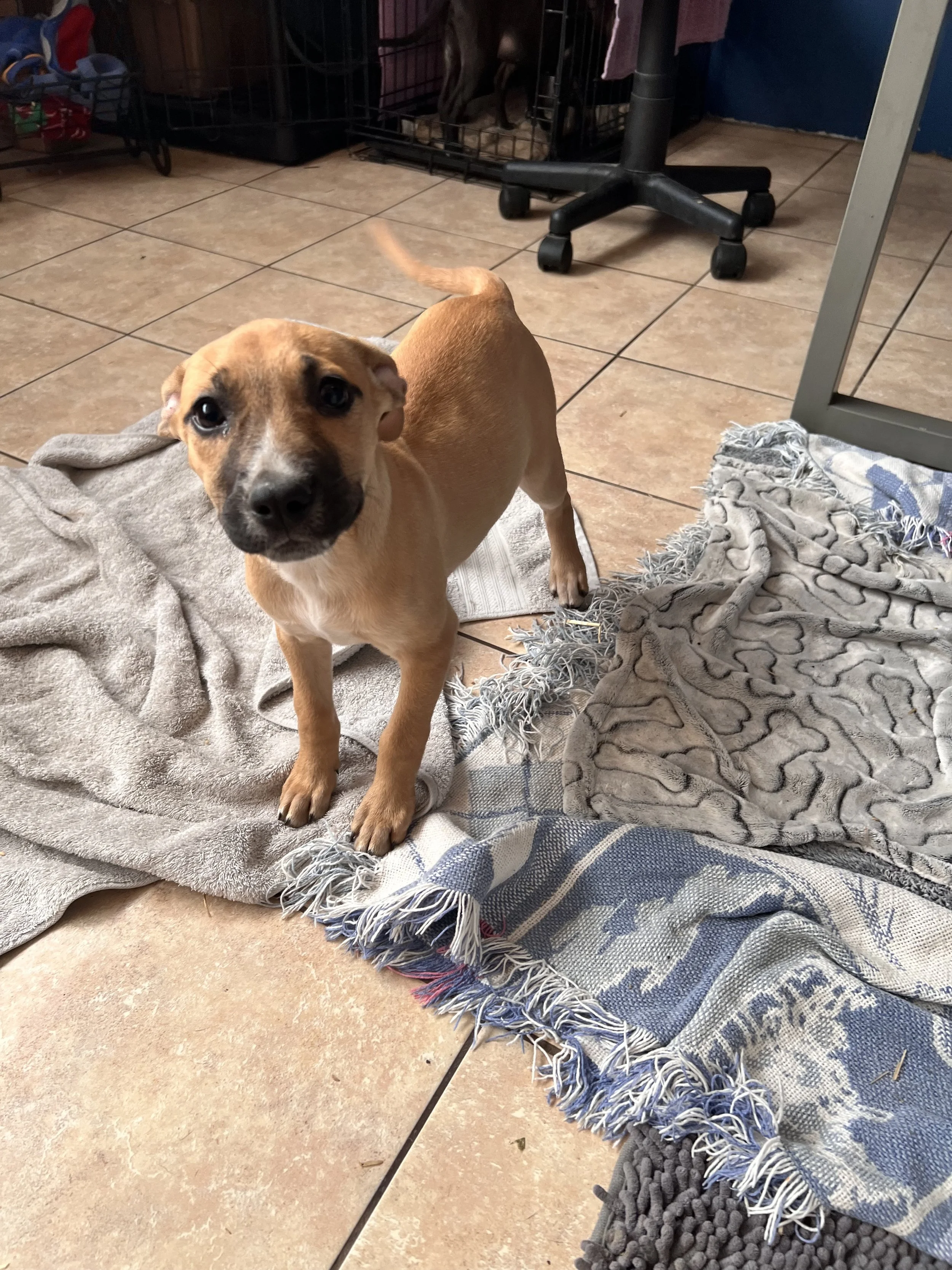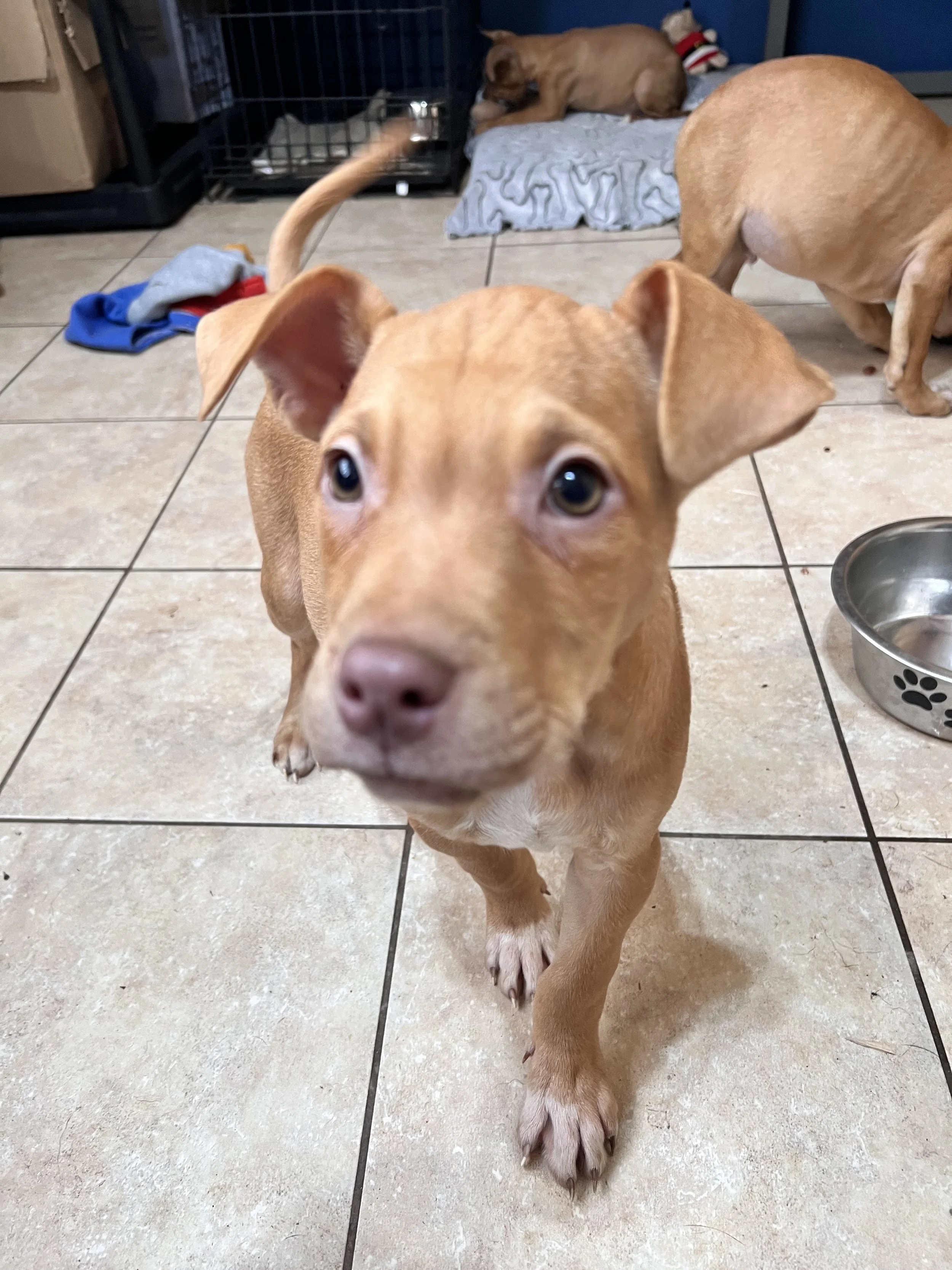This gal was brought in when her owners could not care for her or siblings. She is an energetic and friendly pup. She is happy to hang with people, likes to sit in a lap or be held. She is the largest of the bunch but one of the sweetest. She is a great pup waiting on a forever home.