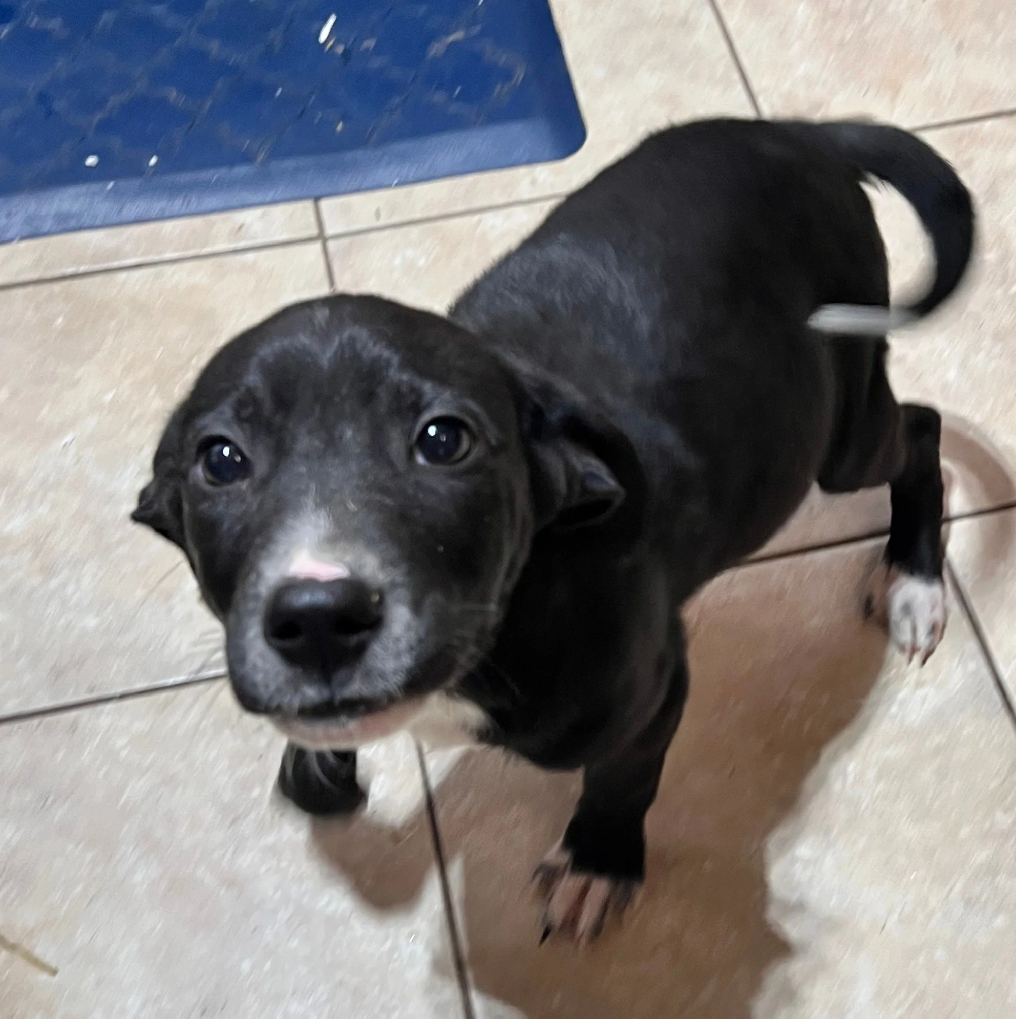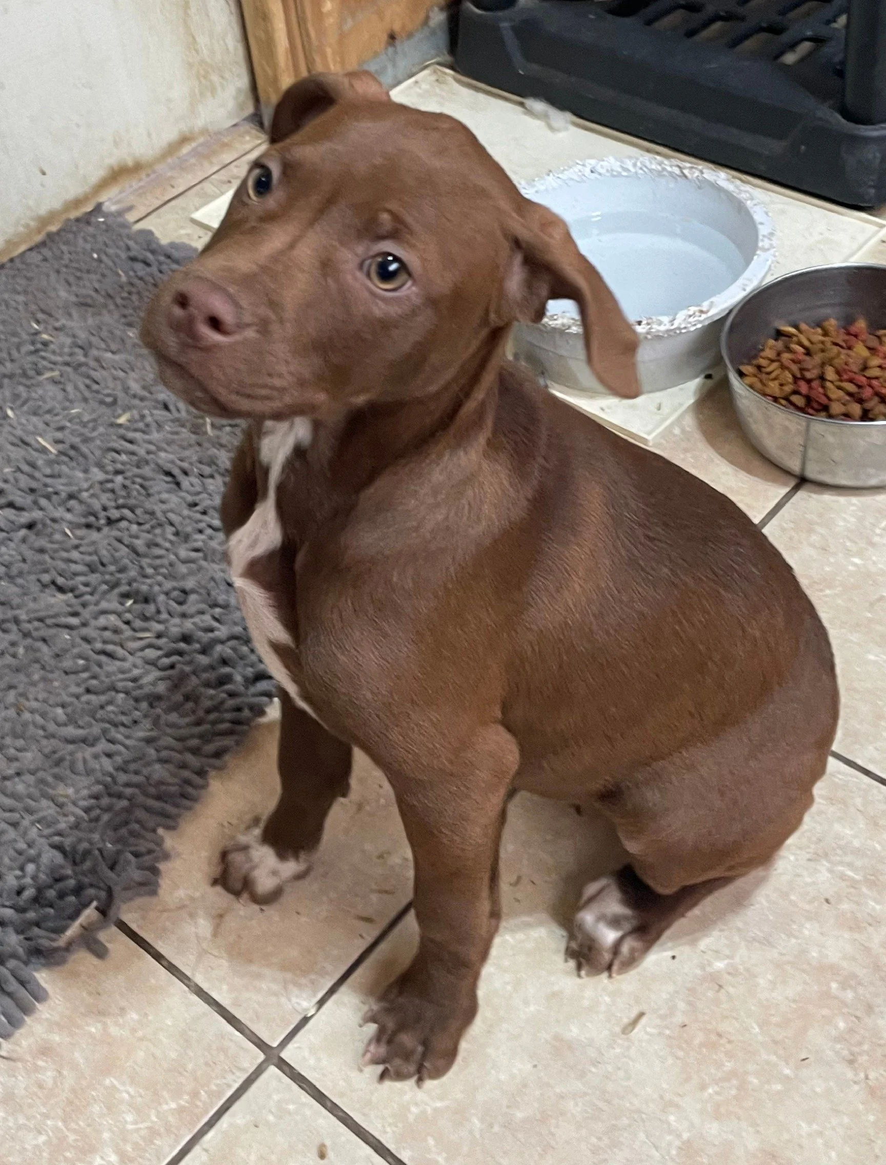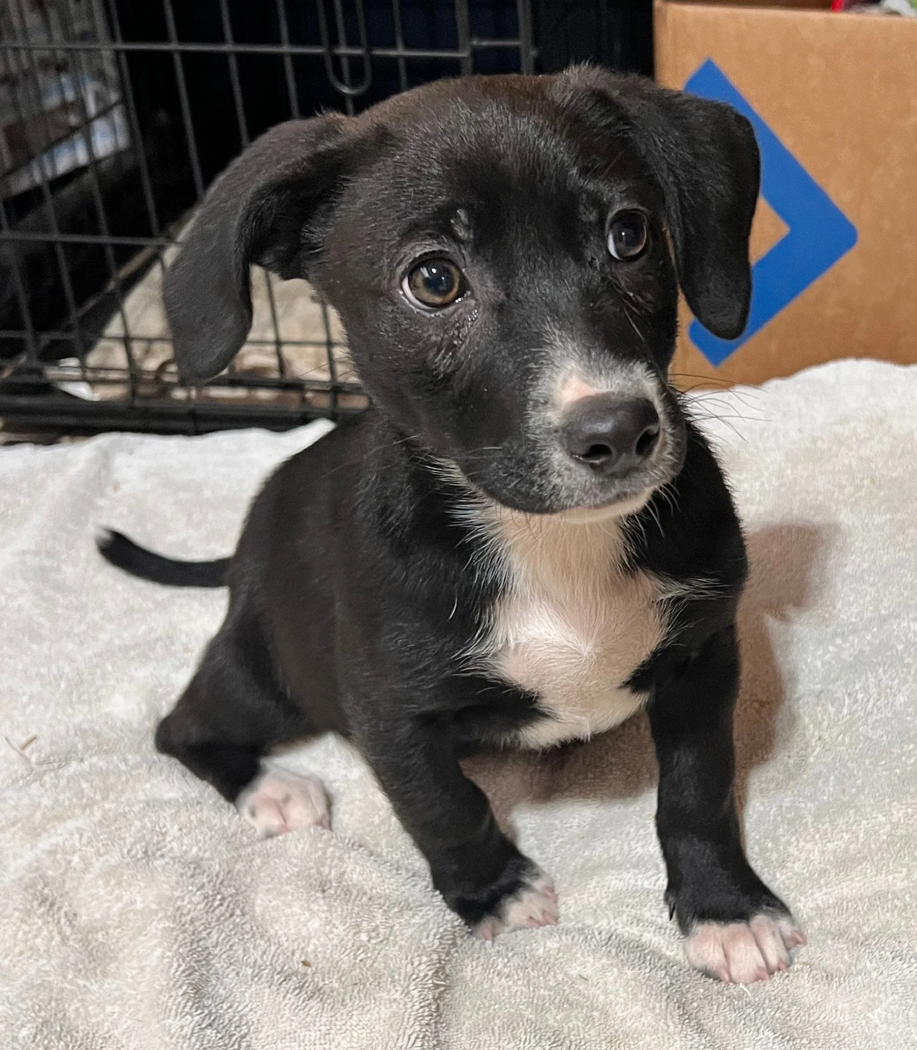 This boy is a fighter. He overcame a severe upper respiratory and eye infection. He bounced back and is ready to find a new home! He is sweet, loves attention and plays well with other pups. He will need puppy training and some spoiling.