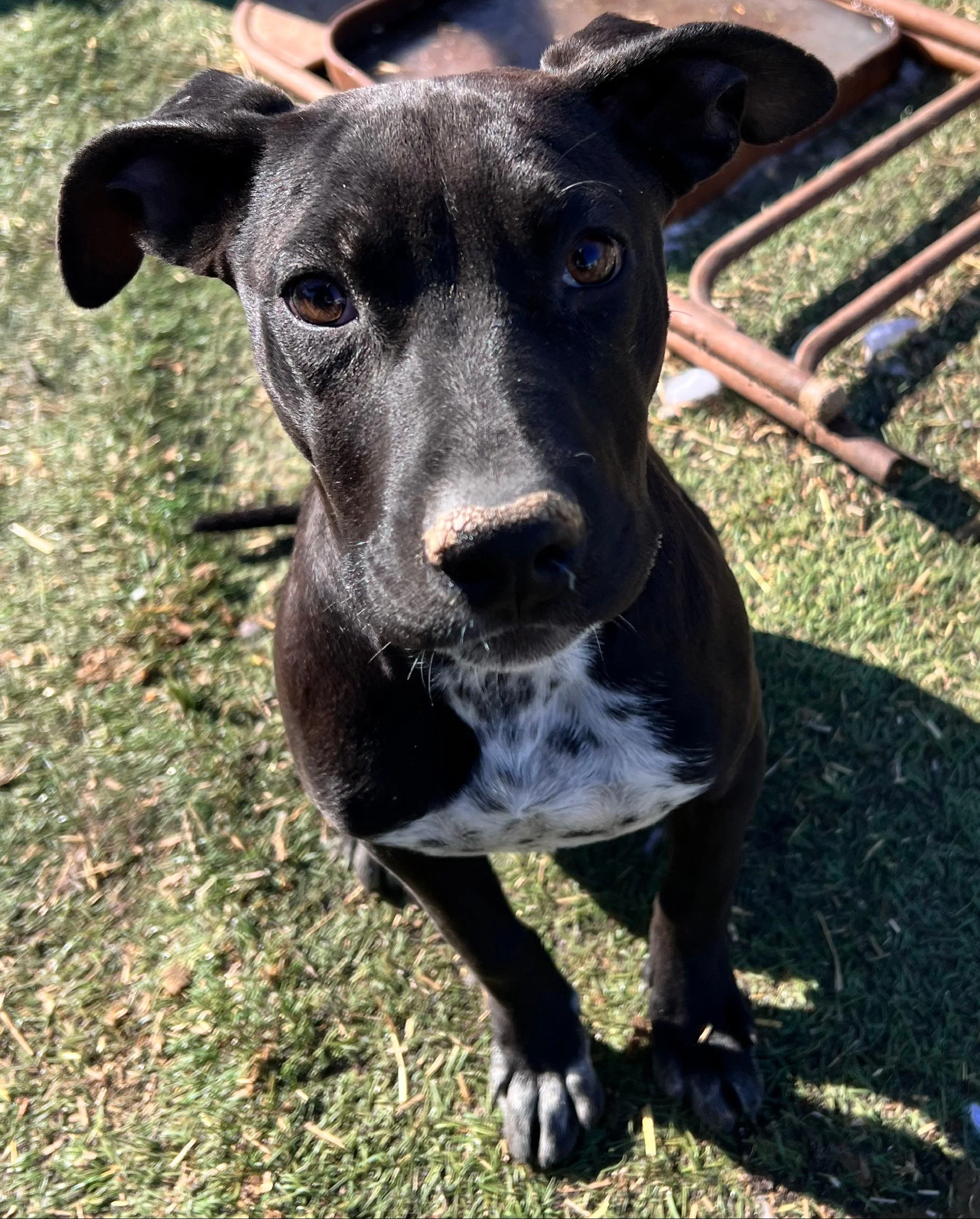 This boy and siblings were found dumped. He is a people pup! Loves hanging out with a person giving kisses. He likes to be held and will follow you around a yard. Curious and good with people and other pups. He is a shelter favorite and ready for a forever family.