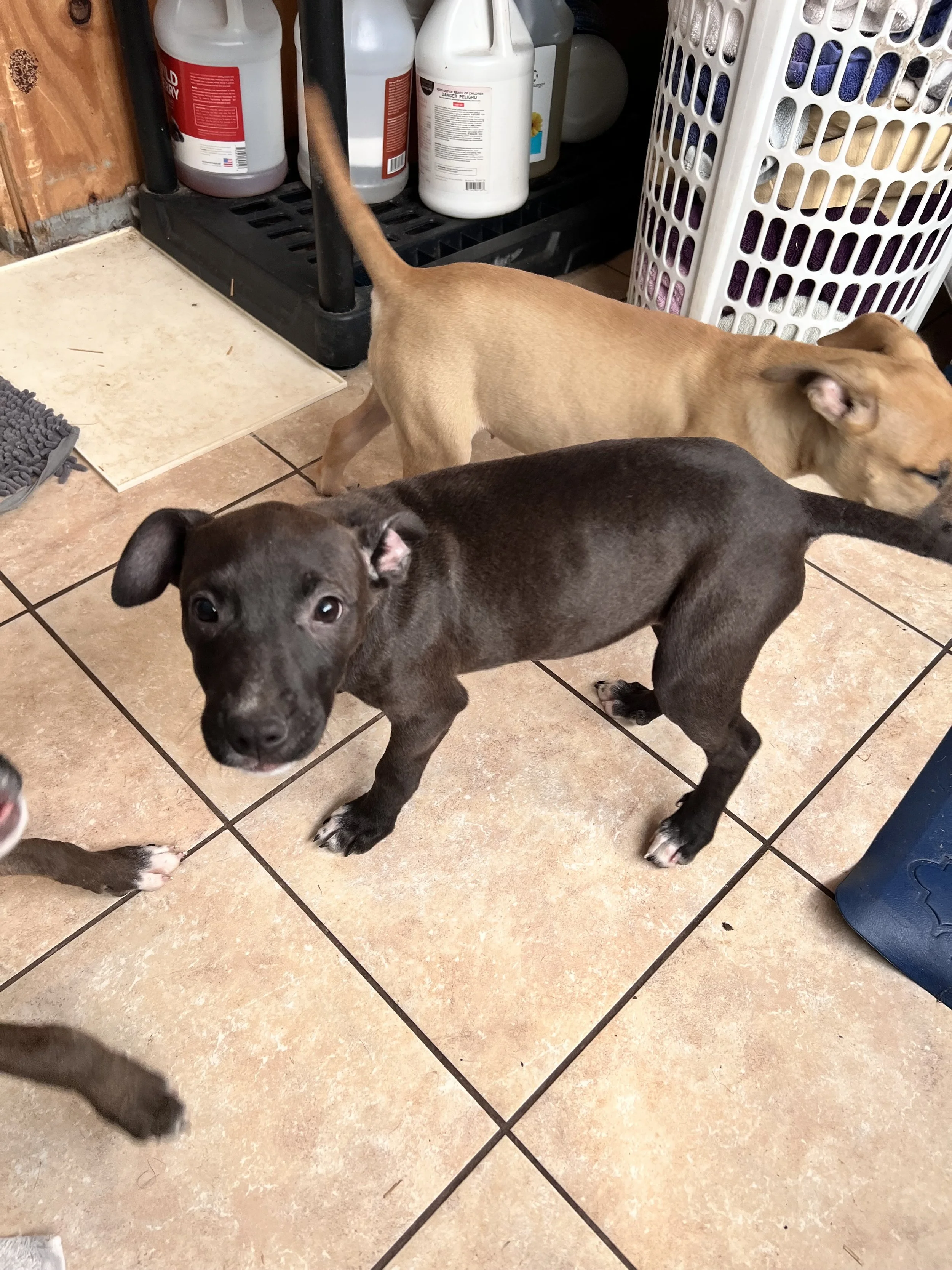 This boy was dumped at the flea market then brought to us. He is a sweet, fun boy who is ready to go! He knows how to use a dog door but will need all other puppy training. He loves to play and has done well with other play groups. He will make a wonderful family pet with any family.