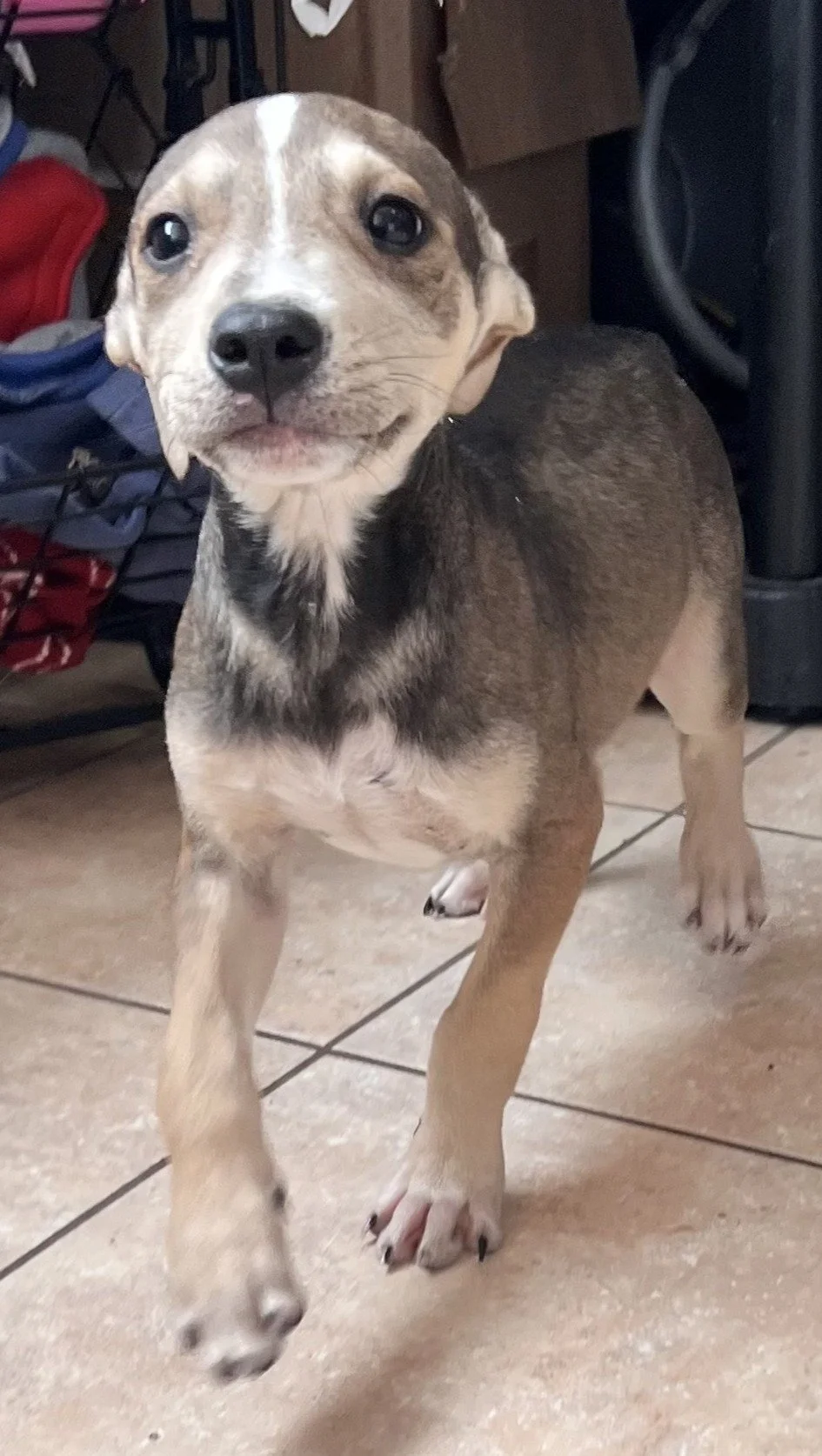 This sweet girl was brought in with her sister. She is a friendly, happy puppy who has plenty of energy to keep a family busy. She has no issues with other puppies or strangers. She is not afraid of much and will make a fun family companion.
