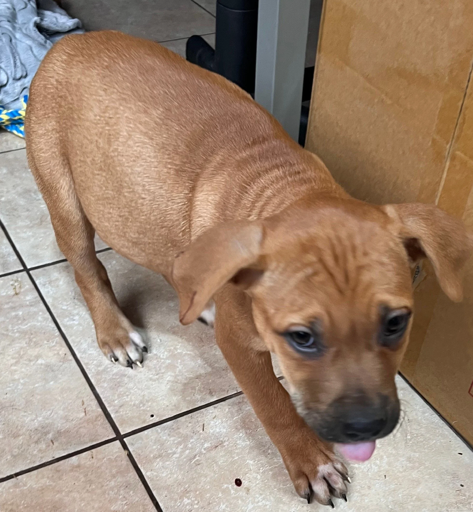 This boy and siblings were found dumped. He is as ready to go as his sister and just as energetic! He also loves playing and exploring. He is not afraid of new areas and will be a great traveling companion. He does need basic puppy training but patience and routine will do him good. He’s ready to leave!